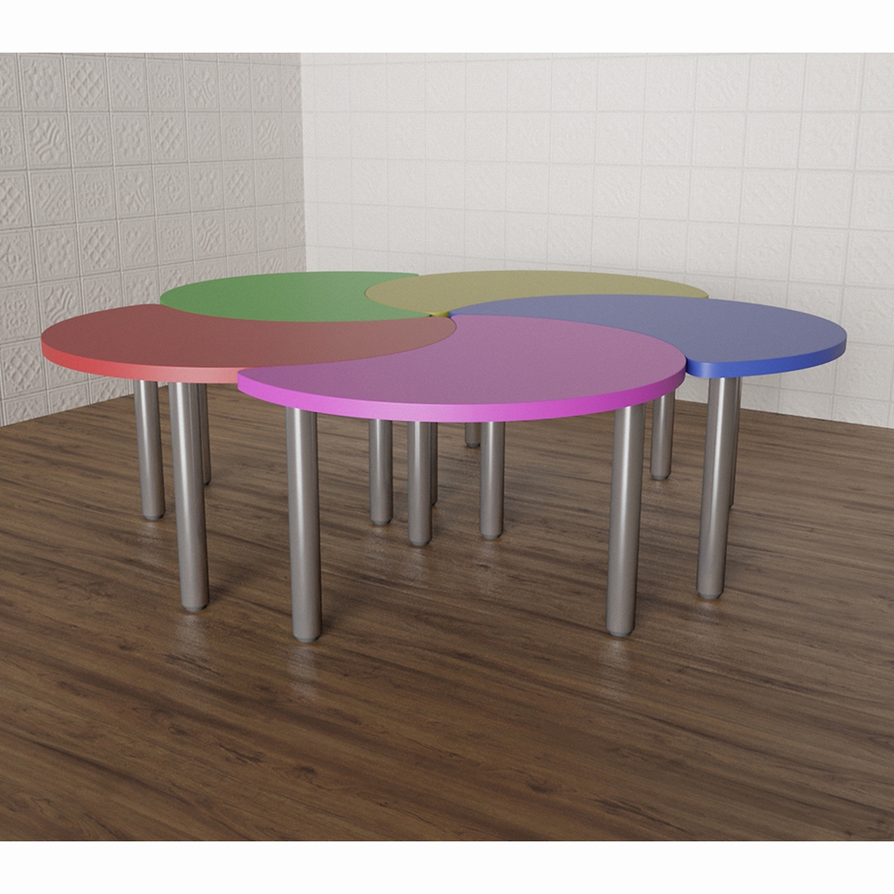 Детский стол «Ромашка» с легкостью привлечет внимание детей и взрослых благодаря своему дизайну и функциональности. Его можно использовать как один стол, но стоит только захотеть и легко превратить в пять отдельных столиков. Он отлично подойдет для занятий с большим количеством детей. Яркий, красивый, а главное максимально безопасный стол, ведь у него все углы и ножки круглые. Учеба, игры и занятия творчеством пройдут интереснее и веселее со столом, дети точно останутся в восторге. А благодаря интересному виду он станет хорошим дополнением вашего интерьера. Предназначен для детей от 3-х лет.