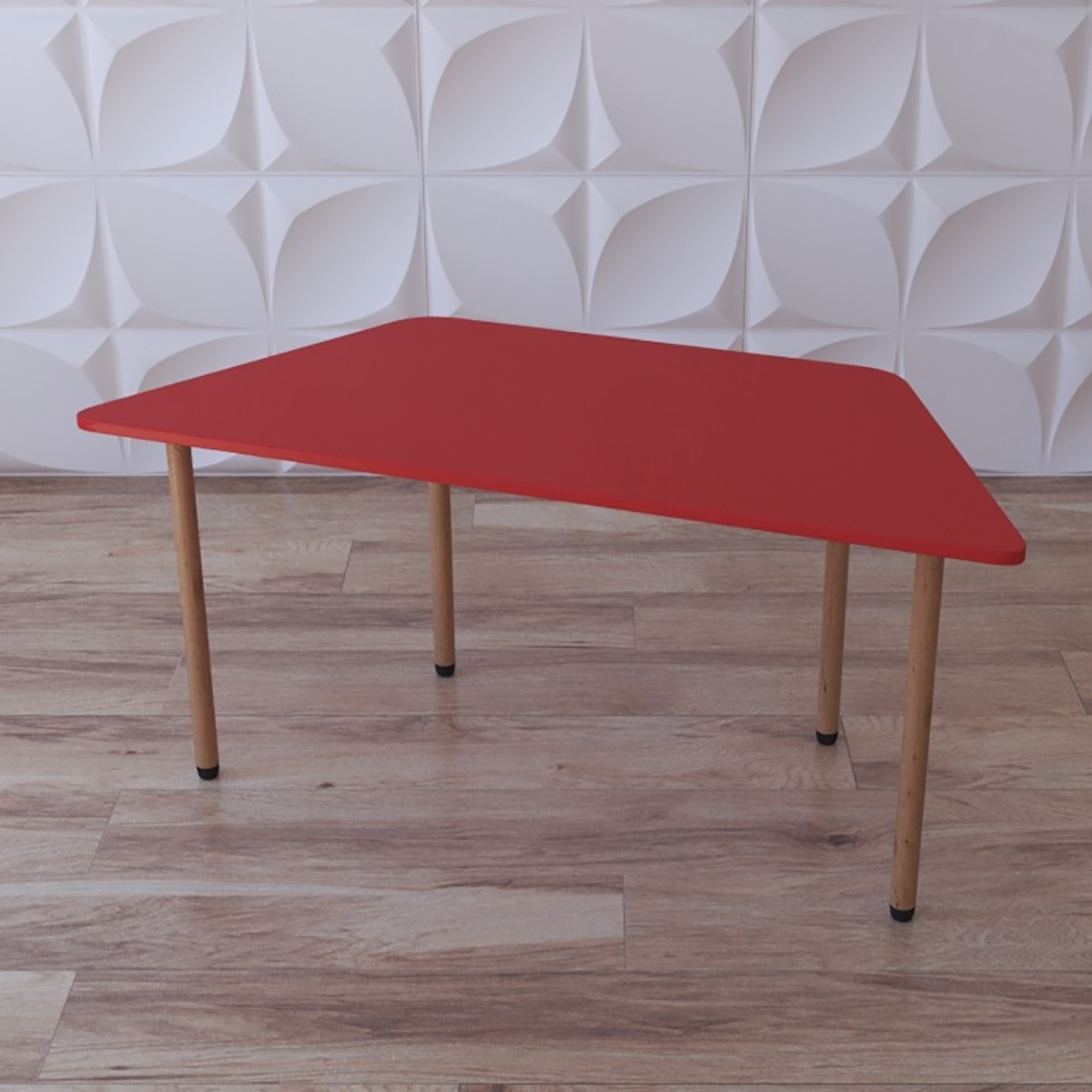 Детский стол “Трапеция классика” нужен для групп в ДОУ, коррекционных и развивающих центрах. Стол легкий, а ещё имеет очень простую конструкцию - состоит из 4-х ножек и столешницы формы трапеции, окрашенной в ярко-красный цвет. За ним можно разместить 1-2 ребёнка. Группа из таких столов обеспечит учебными местами учреждение образования и не только – они одинаково к месту будут смотреться как в группе детсада, так и в художественном классе, на подготовительных занятиях к школе или дополнительных занятиях для младших школьников.