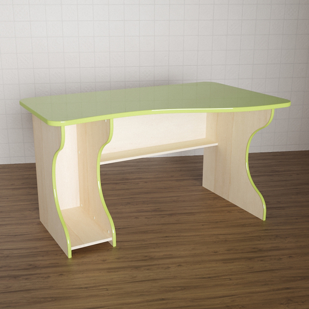 Детский стол “Учеба в радость” нужен для групп в ДОУ, подойдет также для занятий в начальных классах, коррекционных и развивающих центрах. Он имеет очень практичную конструкцию «взрослого» компьютерного стола. Удобно расположенные полочки позволяют хранить книги и игровые наборы. Весь модуль имеет цвет натуральной древесины, кроме столешницы – она окрашена в нежный зеленый цвет. За ним можно разместить 1-2 ребёнка. К столу такой конструкции можно подобрать подходящую по исполнению скамейку.