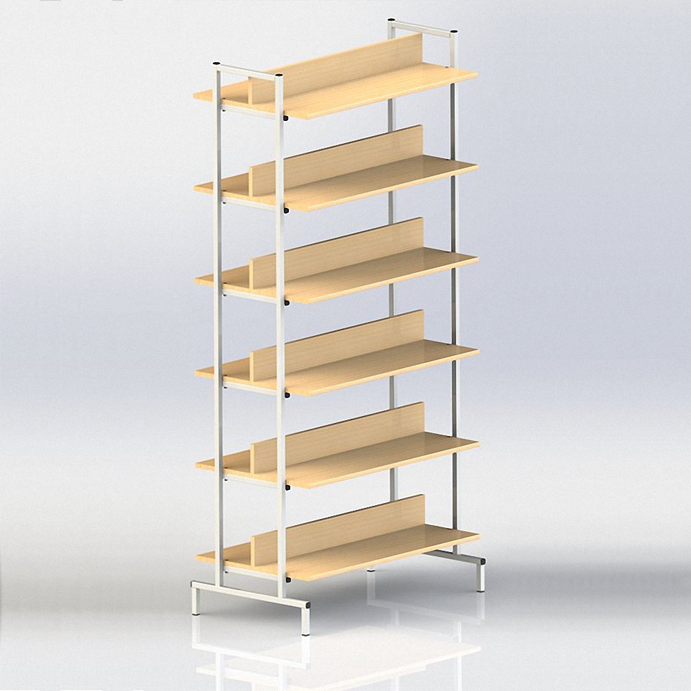 Оригинальный стеллаж. Хорошо сочетается в интерьере как с металлической, так и с корпусной мебелью. Прочная и устойчивая конструкция. Современное решение для школы или другого учебного заведения, библиотеки, офиса.