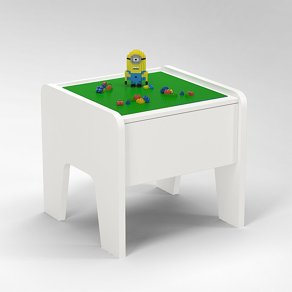Компактный стол для игр в лего, замечательно подходит для детских садов, развлекательных и обучающих детских центров и школ. Предназначен для первоначального обучения в области робототехники, как тренажёр для конструирования. Снабжён удобным выдвижным ящиком, куда можно убрать конструктор на время перерыва в занятиях. Стол яркий удобный с комфортной лего-панелью для всех манипуляции учащегося.