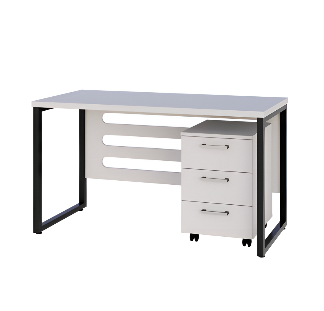 Стол учителя Keremet выполненный из ЛДСП поставляется в комплекте с мобильной тубмой, в столе имеется кабельканал и царга.