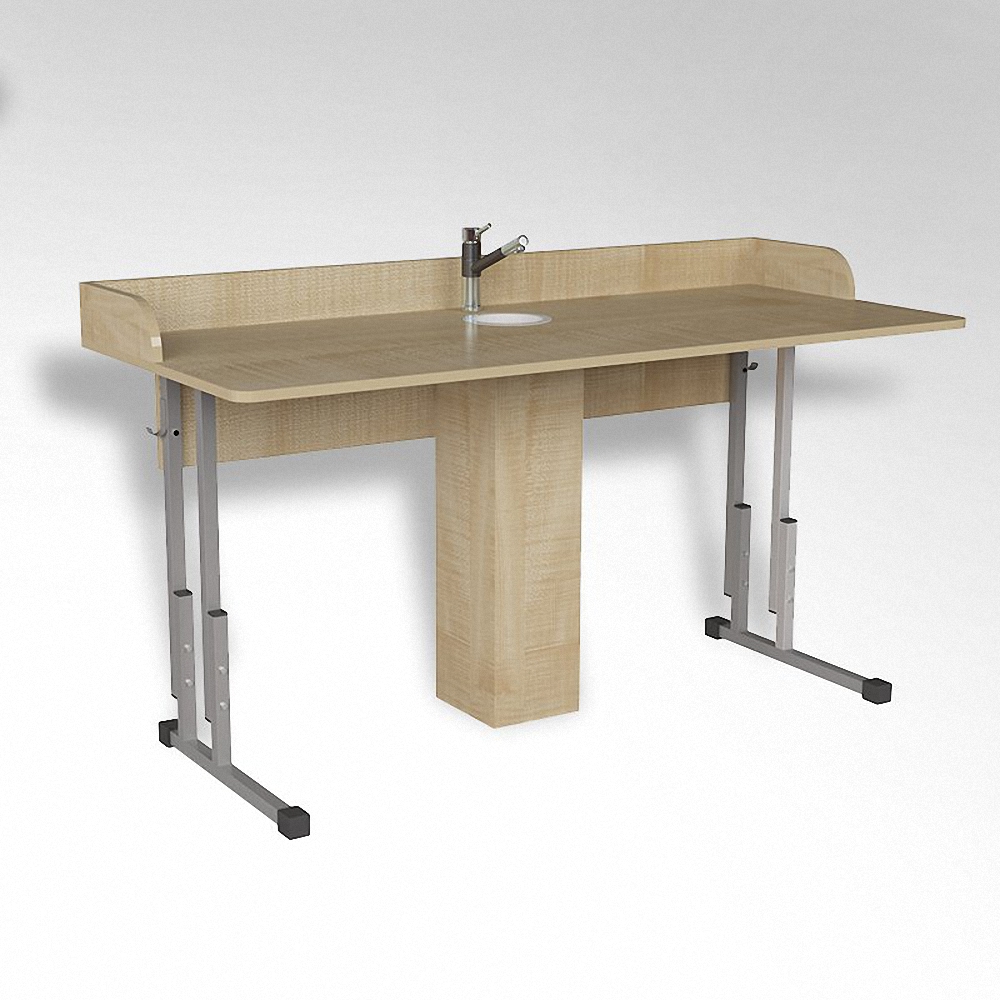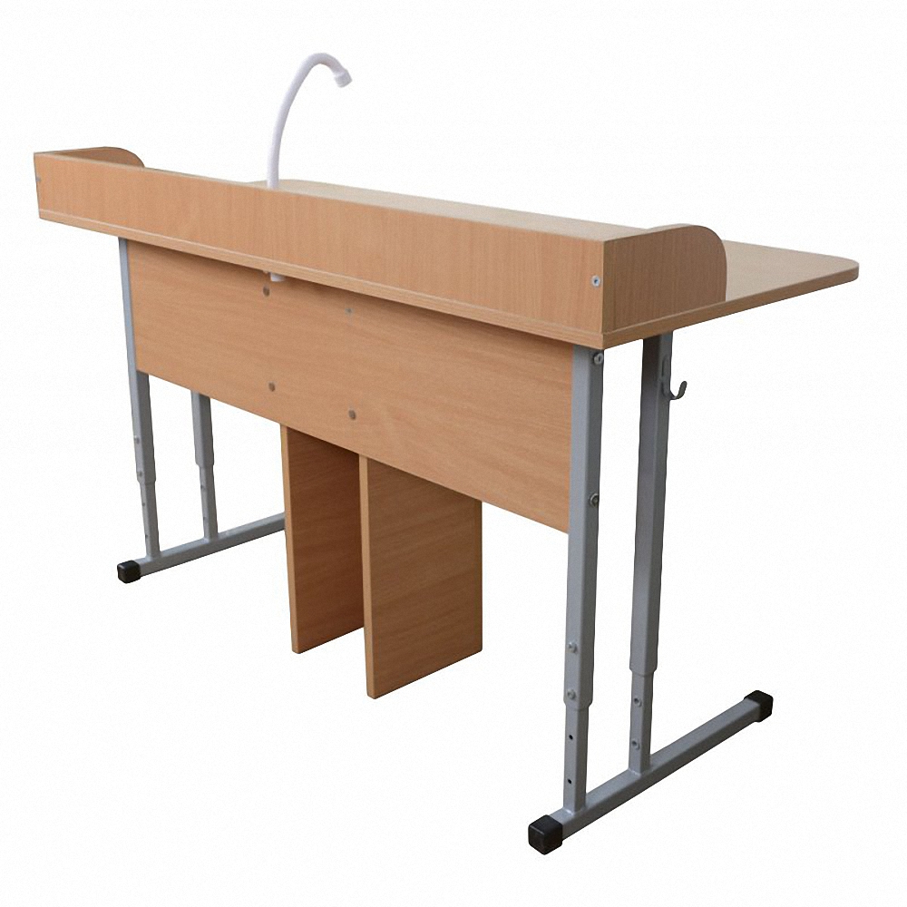Предлагаем специальный вариант для проведения лабораторных работ. Модель оснащена защитными бортиками, краном для подачи воды и сливным отверстием. Такая парта удобная в использовании и подходит для кабинетов химии.