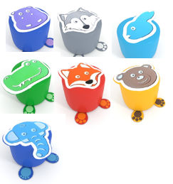 Бегемот , Волк, Заяц, Крокодил, Лиса, Медведь, Слон,  Полянка , Коровка , Арбуз , Мячик , Ромашка , Мышка , Кот , Божья коровка , Щенок , Пчёлка и т.д.