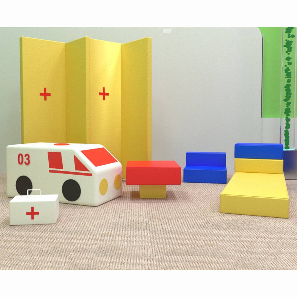 Мягкий игровой набор «Больница» - комплектное детское оборудование для сюжетно-ролевой игры (основы практического обучения детей таким навыкам как социализация и коммуникация с самого раннего возраста и залогом правильного и гармоничного всестороннего развития). Представленный модуль изображает медицинский кабинет со всем необходимым оборудованием и даже машиной неотложной помощи. Сюжетно-ролевые игровые модули – отличное подспорье педагогу в плане простоты преподнесения необходимой информации - сам модуль даёт базовое понятие о том, что такое больница как учреждение, её функции и устройство системы, знакомит со связанными профессиями (врач, медсестра и т.д.) а использование его в сюжете игры помогает детям учиться налаживать зрительный и вербальный контакт, выстраивать ситуационный диалог, налаживает умение подготавливать необходимые игровые атрибуты и использовать их к месту и по своему назначению, и конечно же, учит заведомо вежливому обращению к товарищам по игре. Очень важно своевременно и в наиболее доступной форме преподносить знания и умения будущему поколению, ведь они и есть наше будущее, и от нас зависит, каким оно будет.