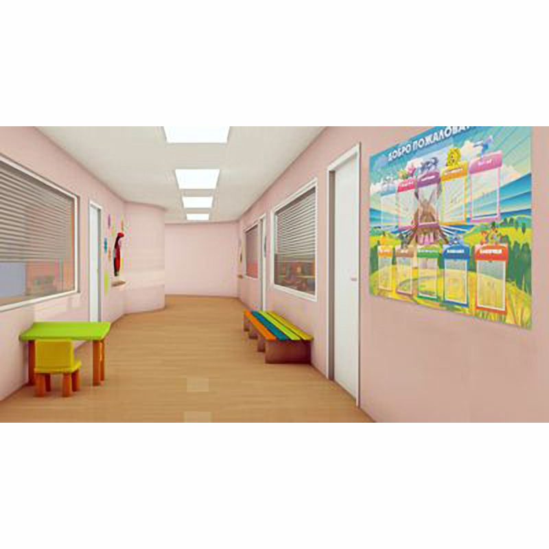 Яркий и необычный ознакомительный стенд. В нем можно поместить информацию о списке детей в группах, а также, о воспитателях и их помощниках. На заднем фоне изображена мельница, стоящая на холме, широкие поля, раскинувшиеся на далекое расстояние. В небе плывут белые облака, а где-то за мельницей прячется солнце.