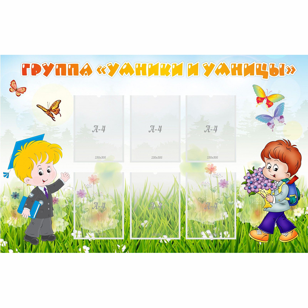 Ребята, изображенные на стенде, всегда готовы получать и применять новые знания. А как это у них получается, родителям поведают информационные материалы, помещенные в шесть прозрачных пластиковых карманов. В них могут размещаться фотографии, рисунки, плакаты, важные объявления, распорядок дня и прочая нужная информация для детей и их родителей.