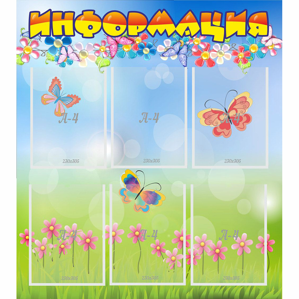 Детский садик – это маленькое королевство, в котором каждая минута наполнена яркими и незабываемыми моментами. А чтобы быть уверенным, что информация достигнет своего адресата, можно поместить ее в красивый стенд. Тогда родители будут знать, что все новости из жизни садика в первую очередь отражаются на стенде. Воспитатели могут не беспокоиться о том, что кому-то из родителей они забыли рассказать об изменениях в графике детских утренников, предстоящих театральных спектаклях и всевозможных выставках. Приводя ребенка в садик, родители самостоятельно будут просматривать важные новости из жизни детского садика именно на этом стенде. В дизайне гармонично сочетаются необычный шрифт в заголовке и применение цветочных мотивов в оформлении.