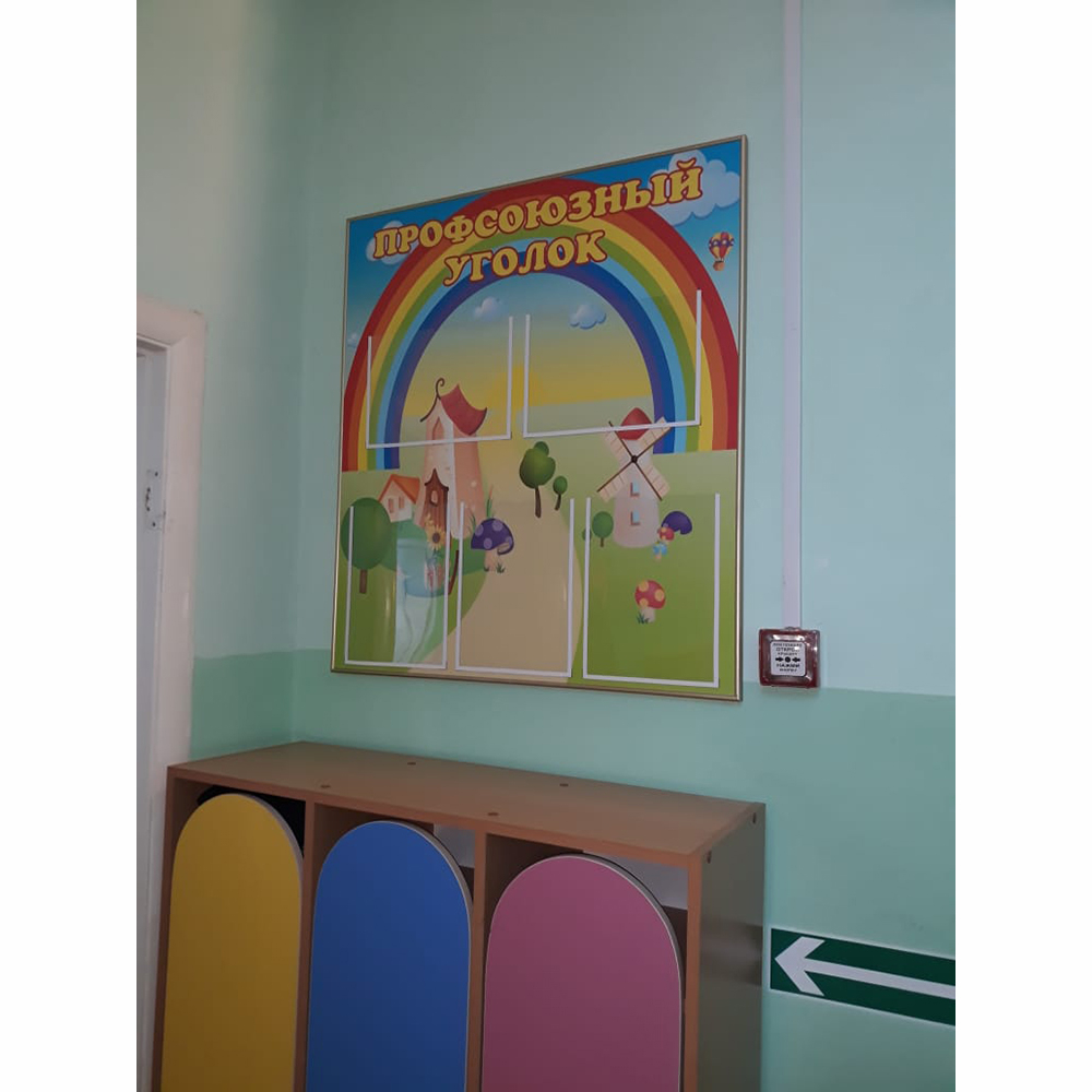 Пополнить информационную составляющую интерьера детского сада позволяет стенд «Профсоюзный уголок». Универсальность стенда заключается в том, что на нём закреплены пять карманов – каждый предназначен для фиксации листа А4.