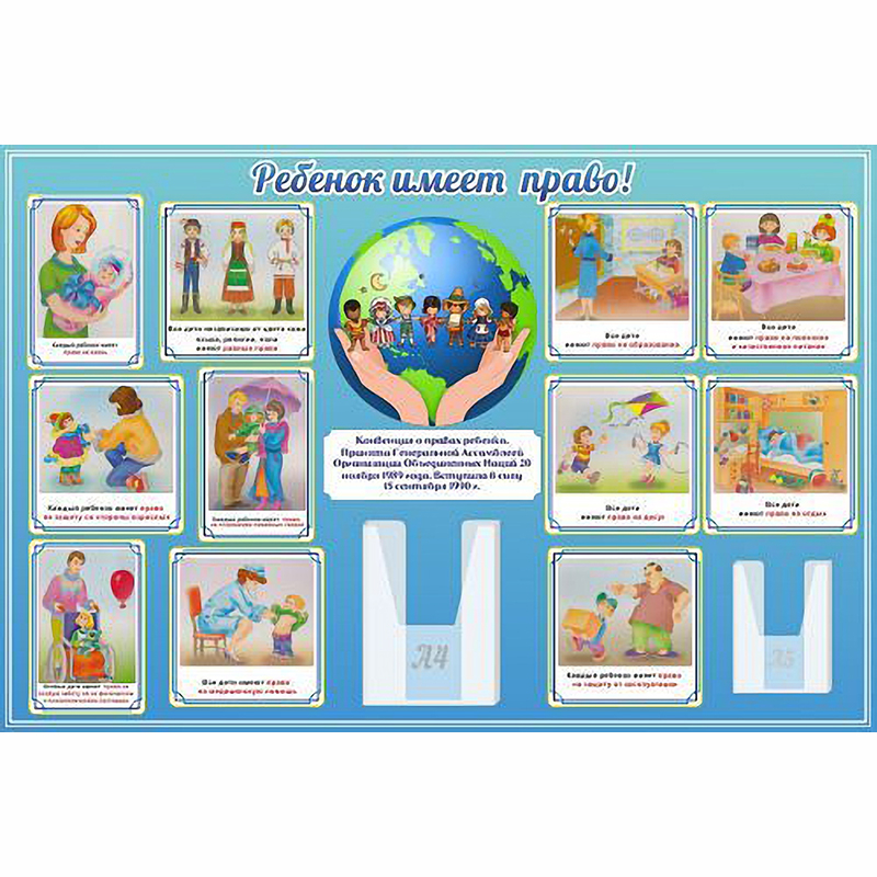 Свои права должен знать каждый, и взрослый, и ребёнок. Данный стенд в доступной форме, с картинками, рассказывает об основных правах детей. Имеются также по одному карману форматов А4 и А5 для листовок на тему прав ребенка или дополнительной информации.