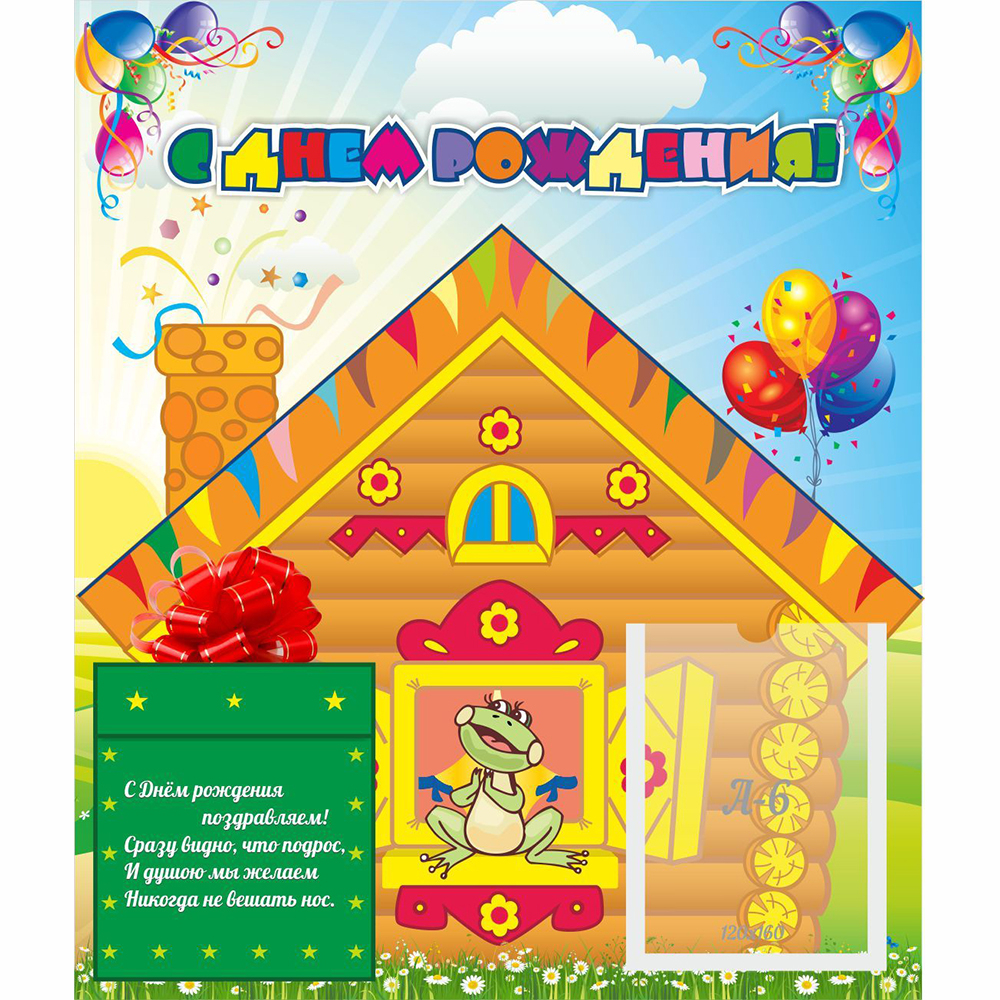 Малышей в группе так много, как же не забыть поздравить каждого с днем рождения? В этом поможет яркий стенд, в информационном кармане которого можно поместить фотографию именинника. Веселая лягушка, сидящая на окошке избушки, прочтет красивый стих. Яркая картинка, украшенная воздушными шариками, подарит сказочное настроение и теплые улыбки.