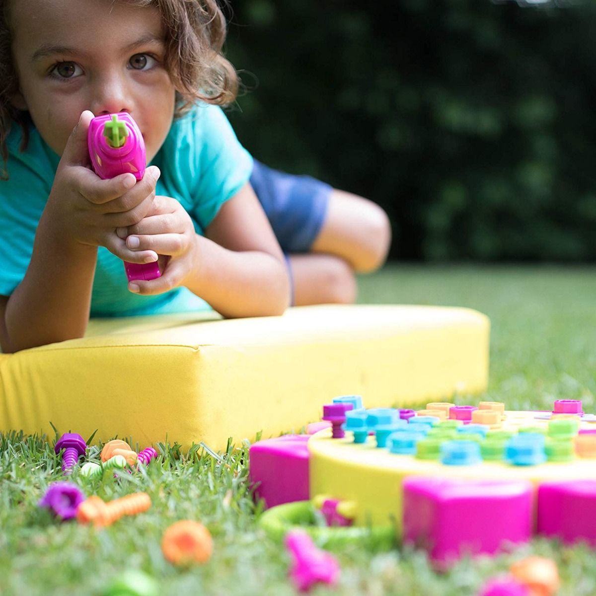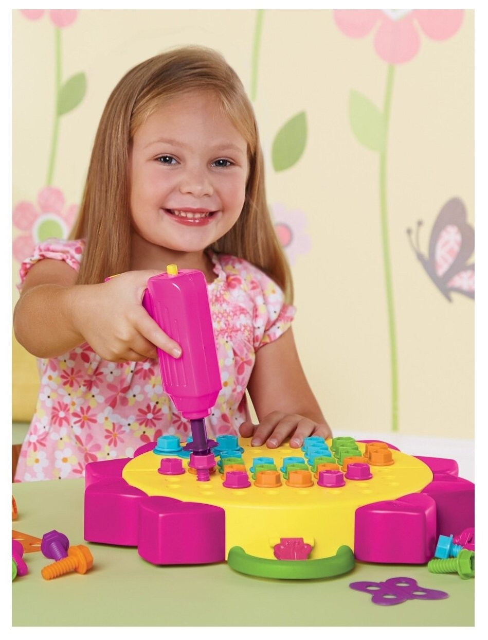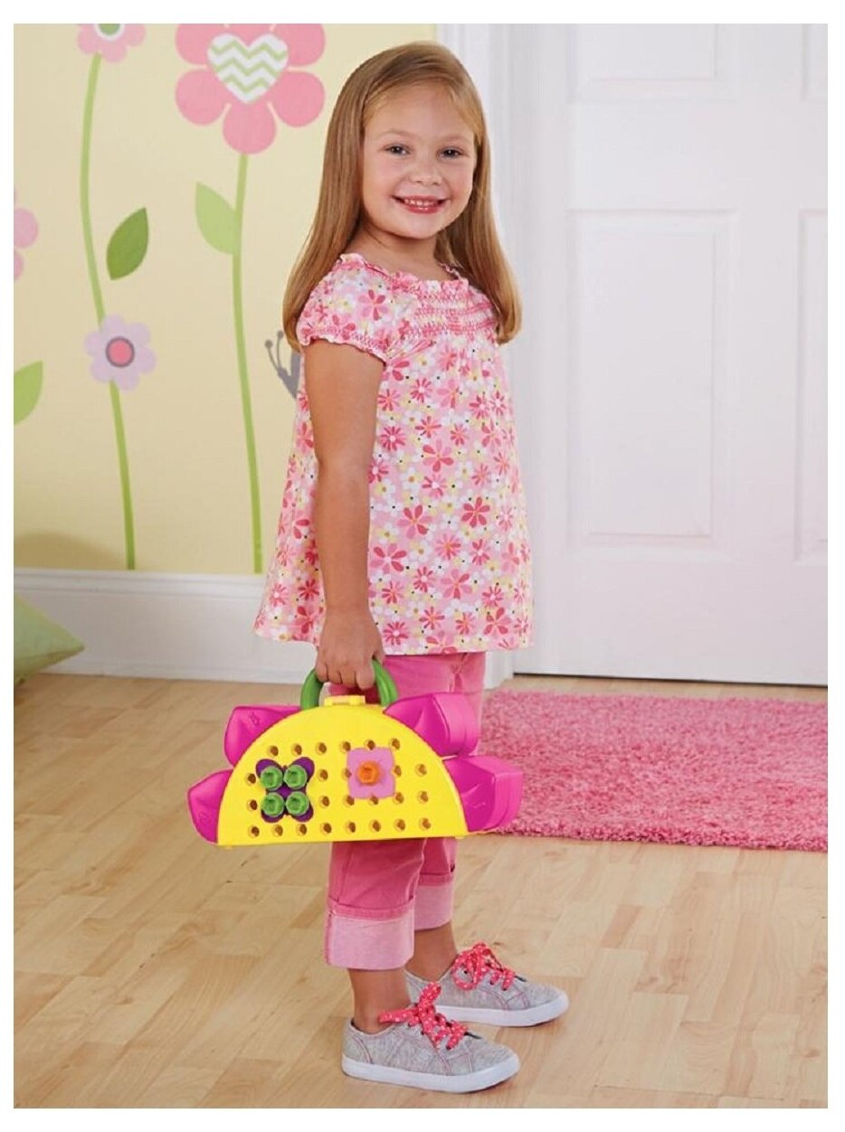 Насыщенные цвета болтиков прекрасно контрастируют со светлым фоном рабочей панели, позволяя ребенку сосредоточиться на процессе создания осознанного узора