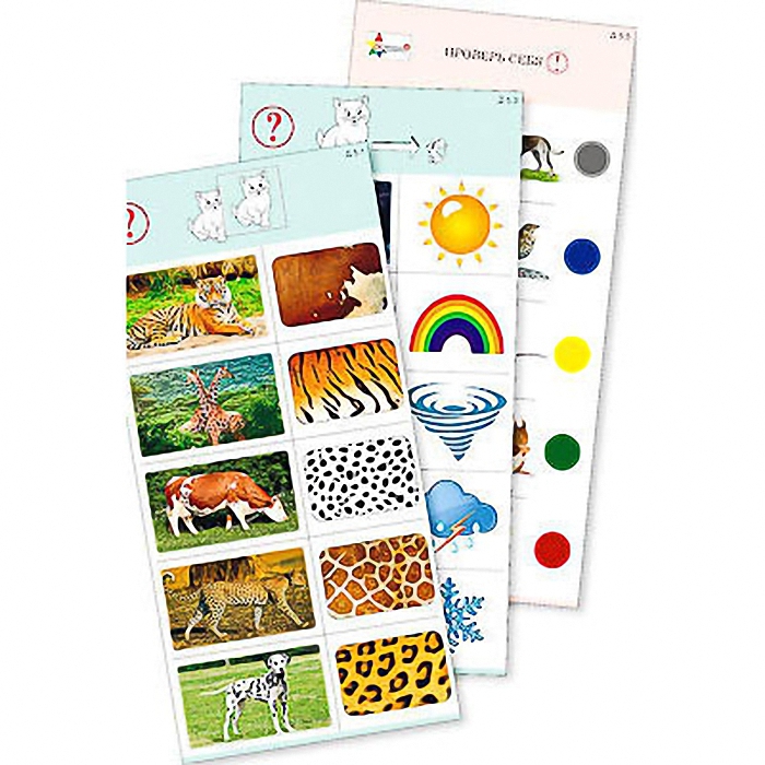 Пособие состоит из 10 полноцветных, напечатанных на картоне и ламинированных пленкой карточек. Является частью игрового набора "Обучающий калейдоскоп для дошкольного образования".