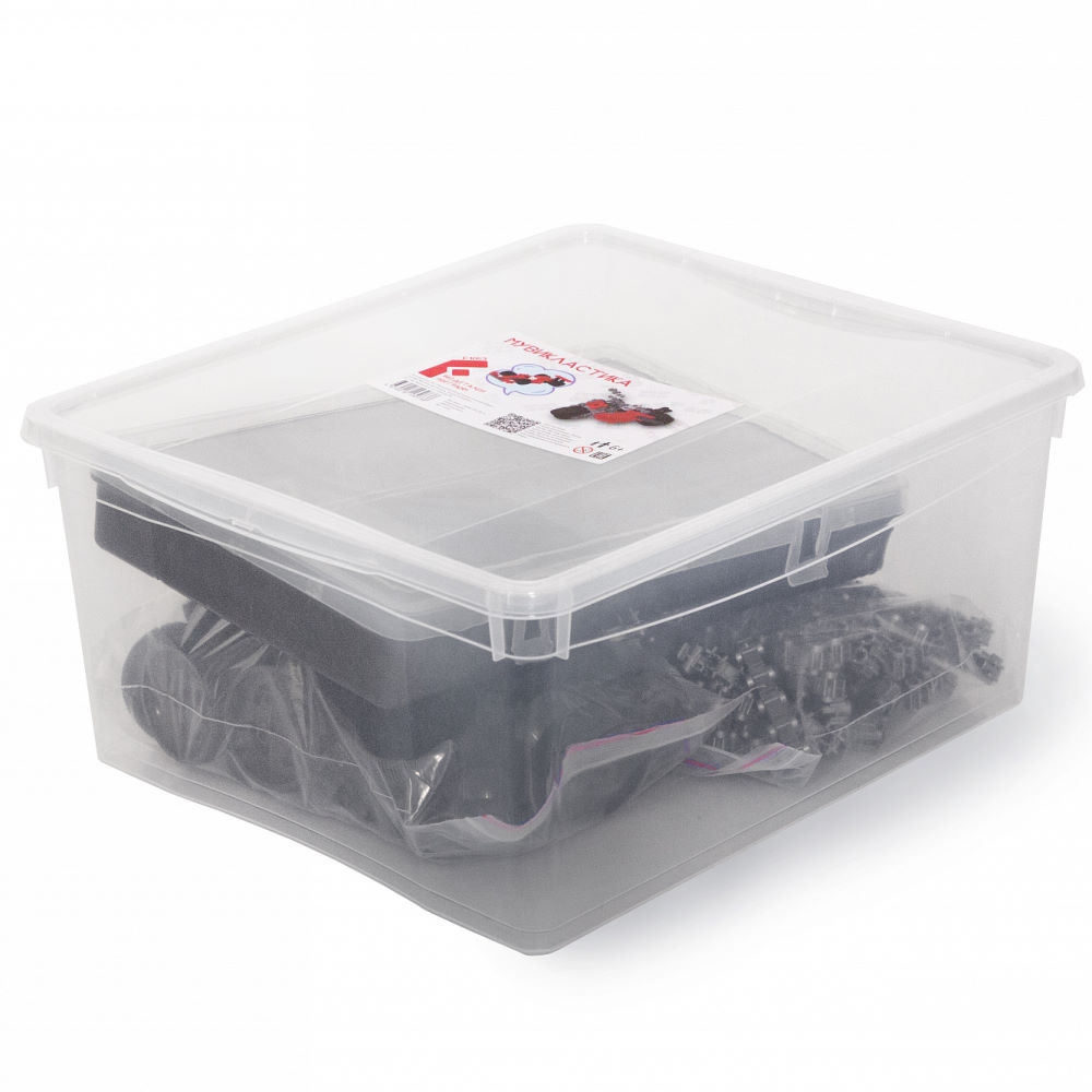 В набор «Мувикластика» входят все варианты колес и деталей для подвижных соединений (17 типов). Может использоваться как дополнение к набору Максикластика, Мидикластика и Basic.Упакован в пластиковый контейнер.Набор рассчитан примерно на 10 учащихся.