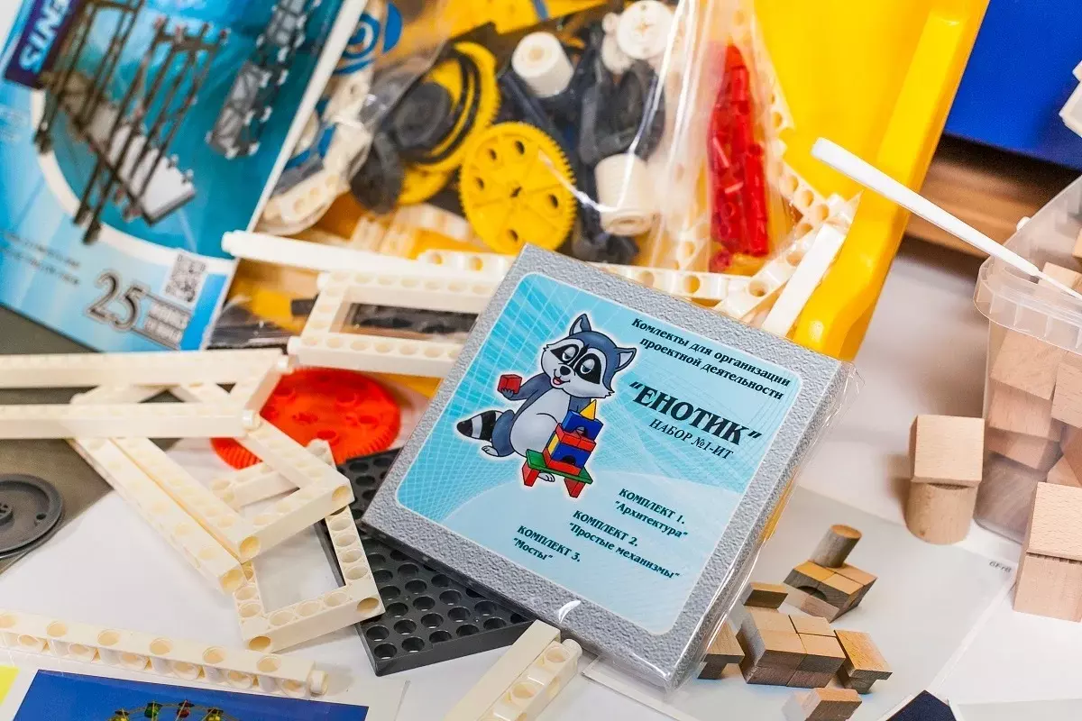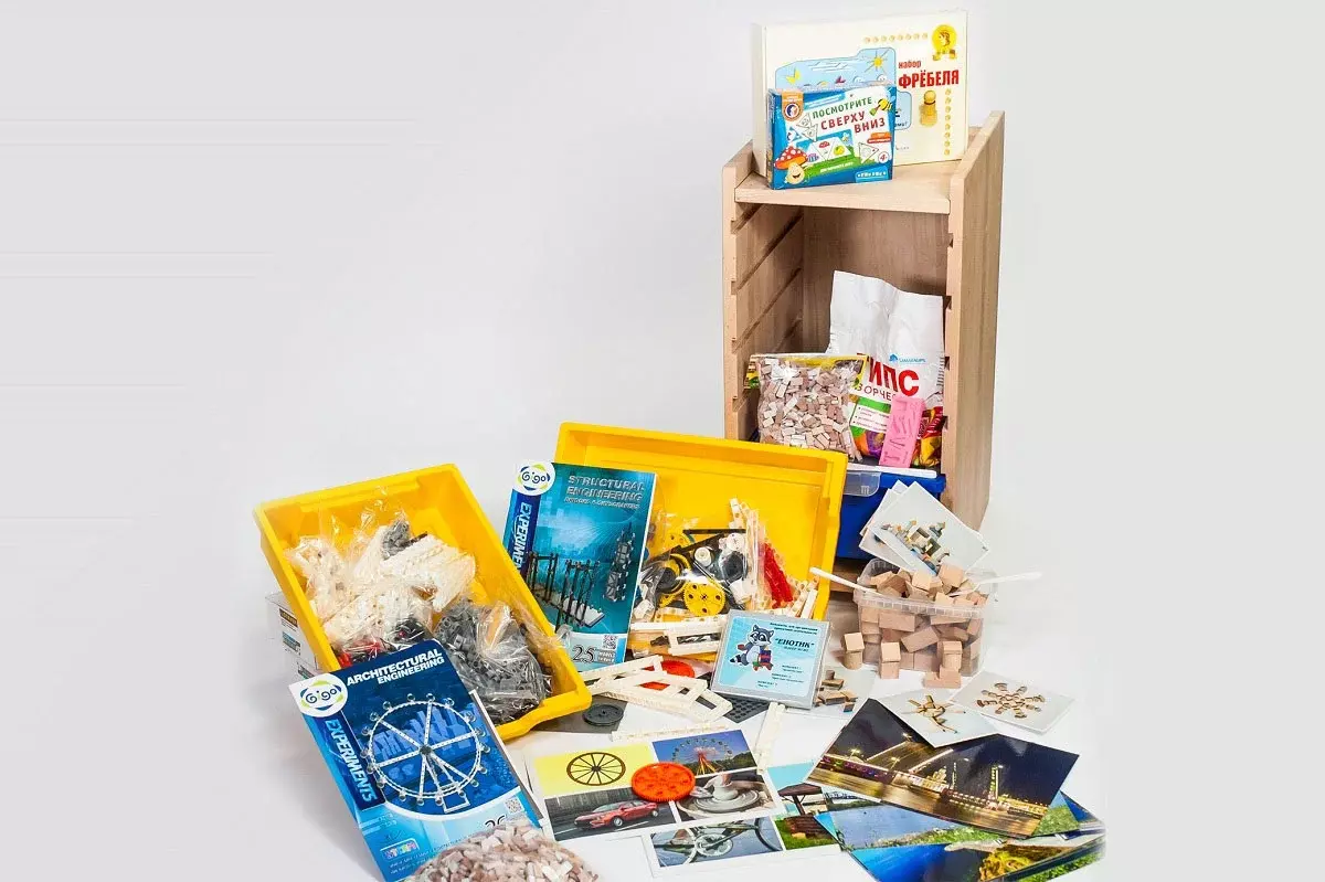 • Комплект № 1 «Архитектура». В комплект входят элементы для конструирования из различных материалов: дерево, пластик, бумага, карточки-схемы, набор инструментов «Юный архитектор», видео-контент, журнал проекта.