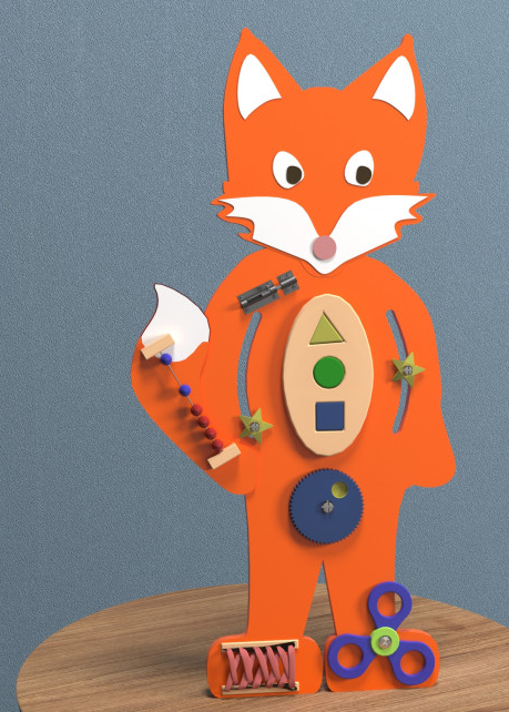 Многофункциональный бизиборд, который будет интересен и увлекателен малышам и деткам постарше. Его форма и изображение лисы познакомить ребенка с миром животных и будет интересен так же, как персонаж из любимых сказок. Производитель позаботился о безопасности игрушки: нет острых углов и не оставляет заусенцы. Купить недорогой бизиборд можно для дома, для дошкольных учреждений, для медицинских клиник и для развлекательных центров.