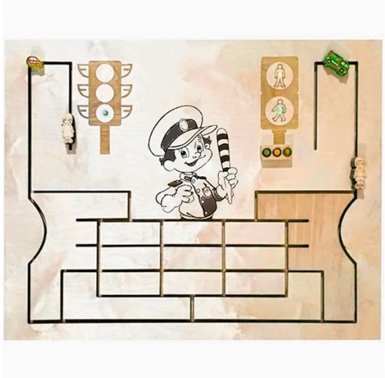 Бизиборд со световыми эффектами — это детская игровая доска, которая направлена на развитие ребенка. Правильно расположенные элементов на доске, а также световые эффекты, позволяют ребенку самостоятельно исследовать детали. Более того, развивающую доску используют в своей практике логопеды и психологи, а также детские сады для развития детей в игровой форме. Во время занятий, каждый ребенок может примерять на себе роль сотрудника ГИБДД.