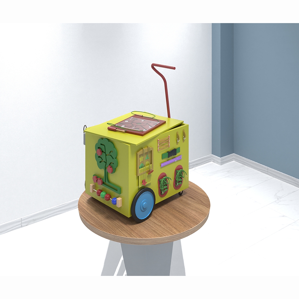 «Бибика» - мобильный многофункциональный компактный бизикуб, оформлен в виде весёлой машинки с множеством разнообразных приспособлений для раннего и всестороннего детского развития.