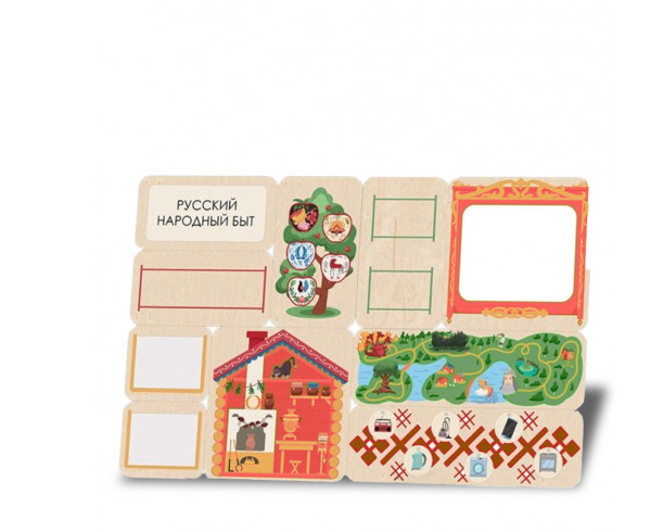 Дидактическая настенная панель на тему домашнего быта - это красивая игровая зона, которая выполнена из качественных материалов и не оставляет зацепок в детских ручках. На панели изображены жизнь и творчество русского народа. Игры на панели вызовут особый интерес: магнитная игра - русская изба, в которой можно переставлять предметы. Лабиринт запутанных тропинок, в котором необходимо спастись от Змея-Горыныча. Спокойных и творческих детей привлечет доска для рисования, на которую еще можно прицепить магниты. Наглядная игра было-стало, покажет малышу как развивается мир, какие новые предметы появились, а какие были. Дидактическая настенная панель как для маленьких детей, так и постарше. Подходит для детских центров, специальных дошкольных учреждений, больниц.