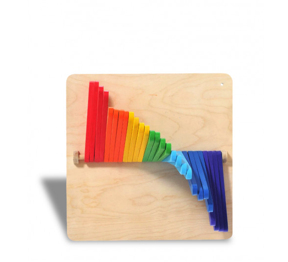 • Ребенку необходимо пальцами крутить дощечки. Все они отличаются друг от друга цветом, так можно освоить и понять, что зеленый может быть и темным и светлым. Двигайте каждую дощечку и называйте вслух ее цвет. Показывайте такого же оттенка знакомый предмет или фрукты. Дощечки также можно считать и изучать счет.