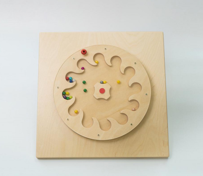 Тактильно-развивающая панель-лабиринт представляет собой деревянную панель с углублением в форме цветка и цветными шариками. Задача ребенка заключается в перемещении шариков по лабиринту внутри панели. Тактильная панель может быть использована в качестве инструмента для саморегуляции и снятия стресса у детей, помогая им успокоиться и сосредоточиться. Игра с таким модулем требует концентрации на задаче и повышает уровень внимания у детей.