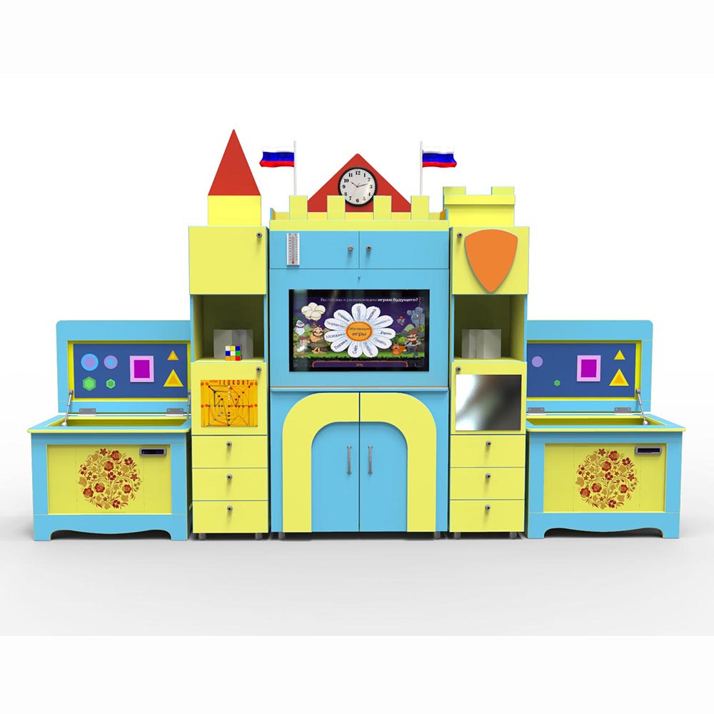 Профессиональный интерактивный развивающий комплекс с коррекционной направленностью "Логопедический Замок" Logo 53 с зеркалом и светодиодной подсветкой. Оборудование востребовано в детсадах, школах, интернатах, кабинетах логопедов, речевых центрах.