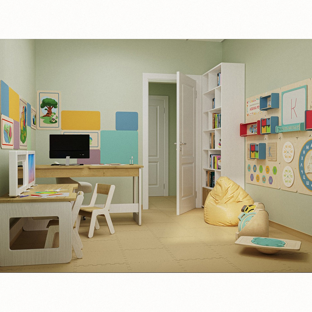 Готовое решение по оснащению кабинета логопеда. Содержит всё необходимое современное оборудование для эффективной работы детского специалиста: стол логопеда с компьютером, рабочий стол для детей, интерактивную панель с профильным ПО для логопедов «Звукоречье», дидактическую панель «Азбука речи», набор корпусной и мягкой мебели, безопасные зеркала, нейротренажеры, методические материалы и пособия.
