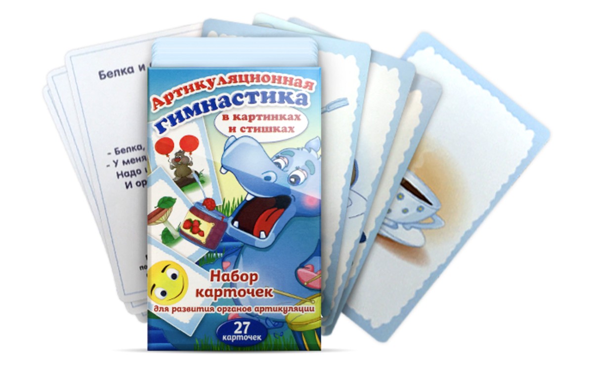 Набор карточек включает в себя 27 карточек с популярными артикуляционными упражнениями.