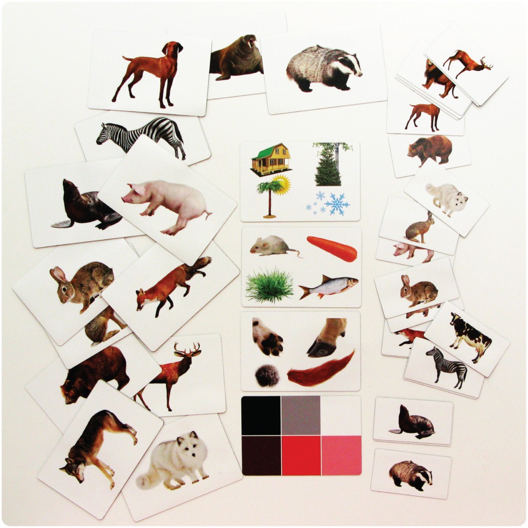 • 20 карточек с животными (50 мм х 90 мм): раздаточный материал;
