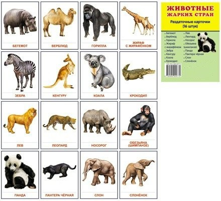 Раздаточные карточки "Животные жарких стран" - fgospostavki.ru - Белово