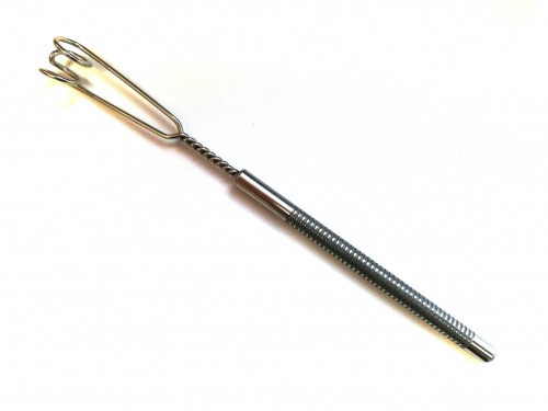 Зонд «Саночки средние» служит для активизации массажа мышц языка, скул, щек, мягкого неба. Саночки легко скользят в разном направлении, мягко воздействуя на мышцы. Изгибы зонда выполнены так, что можно массирующие движения производить любой стороной. Можно использовать одну, две и даже три точки скольжения. Зонд может быть использован для постановки звука Ш, растягивания подъязычной уздечки. Этими саночками захватывается несколько меньший участок, чем при работе «большими саночками», но интенсивность воздействия на мышцу можно заметно увеличить и сделать воздействие более направленным. Обрабатывается кипячением с предварительным замачиванием в дезинфицирующем растворе. При использовании Аламинола, рекомендуем не оставлять зонды в растворе более, чем на час.