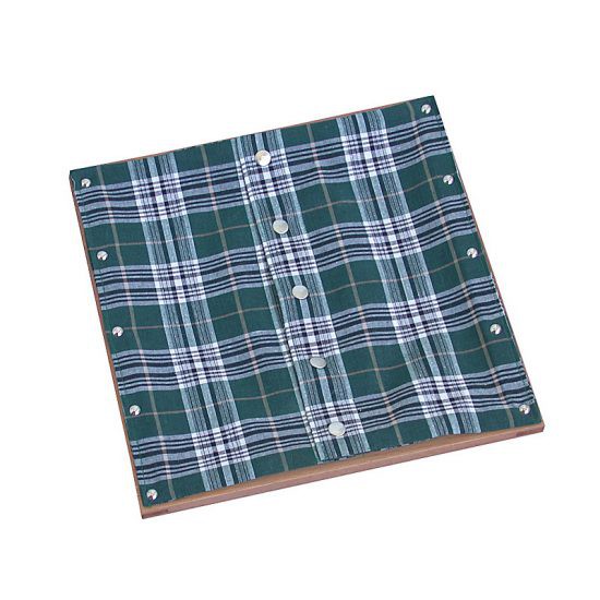 Деревянная рамка с кнопками на ткани.