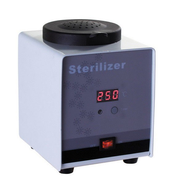 Стерилизатор шариковый с электронным таймером используется для дезинфекции логопедических зондов. Принцип работы аппарата основан на воздействии высоких температур на поверхность парикмахерского инструмента, которые достигаются при нагревании кварцевых шариков в баке стерилизатора.