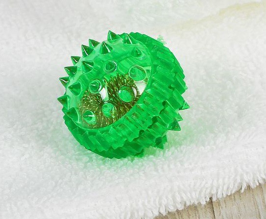 Массажер состоит из шарика в виде ежика и 2х пружинных массажных колец из пружиной проволоки.