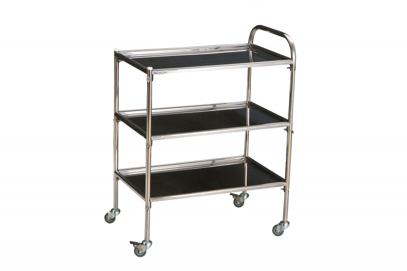 Столик инструментальный передвижной из нержавеющей стали с тремя полками (импортные колеса)