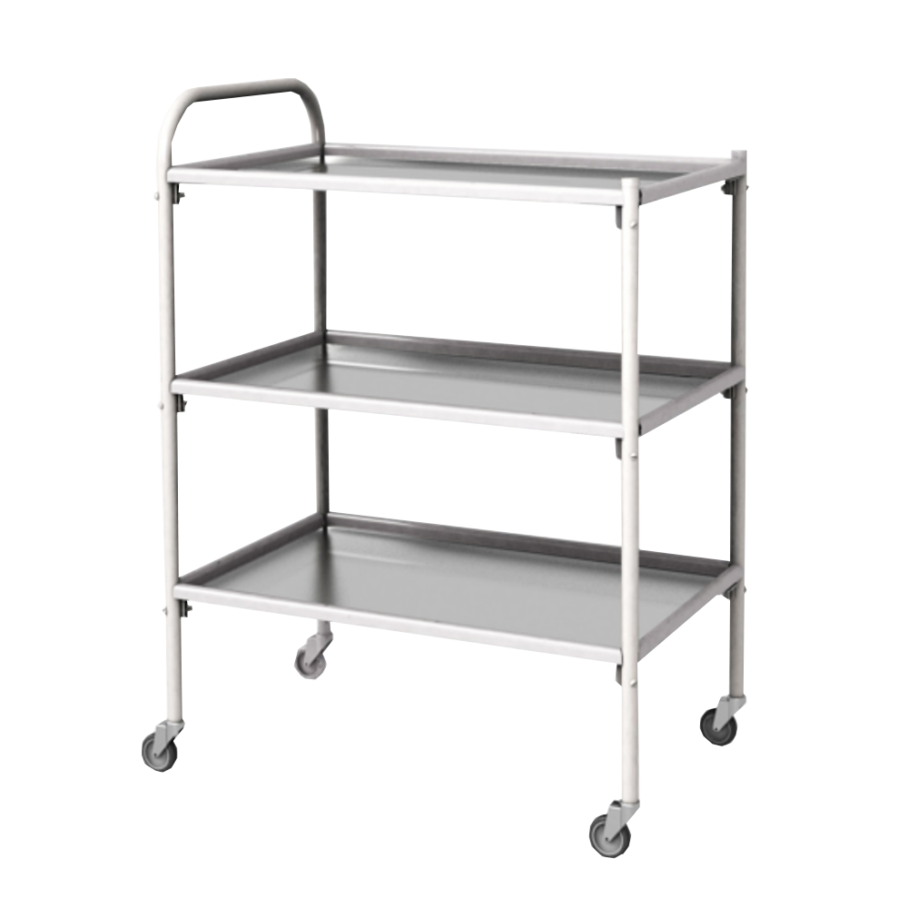 Главная Каталог Оборудование для медицинского кабинета Столик инструментальный передвижной металлический с тремя полками (импортные колеса)