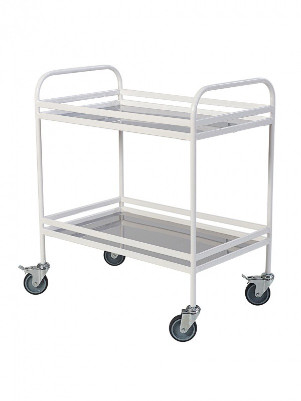 Столик процедурный передвижной металлический с двумя полками из нержавеющей стали с бортиками