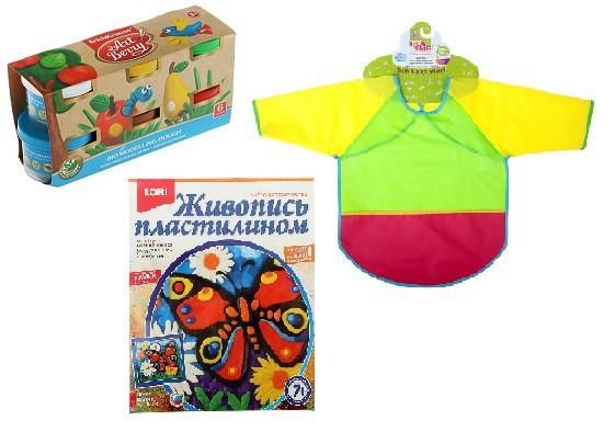 2. Фартук-накидка для детского творчества (1 шт). Выполнен из водонепроницаемого, износостойкого и легко очищаемого материала.