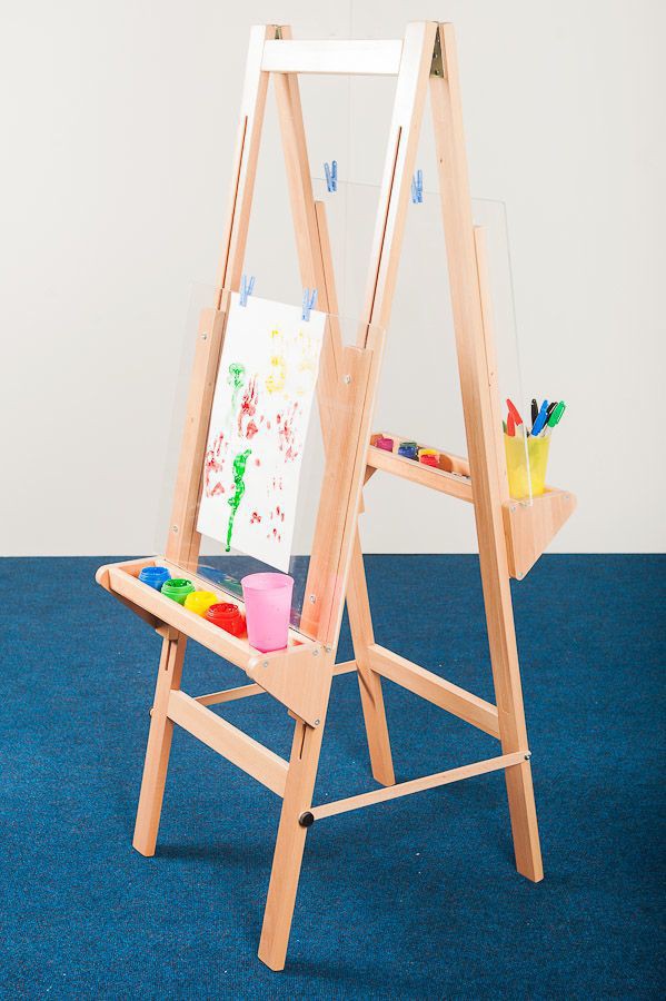 Удобный двухсторонний прозрачный мольберт из небьющегося стекла разнообразит занятия живописью, увлечет детей. Идеально подходит для групповых занятий - одновременно за мольбертом могут рисовать 2 ребенка. Мольберт стоит на устойчивых ножках, высоту стекла можно легко регулировать. Рисунок, выполненный на мольберте, можно сохранить на бумаге - просто приложите к свежему рисунку лист ватмана. Если же рисунок немного подсох, увлажните его, слегка побрызгав водой, а потом приложите бумагу.