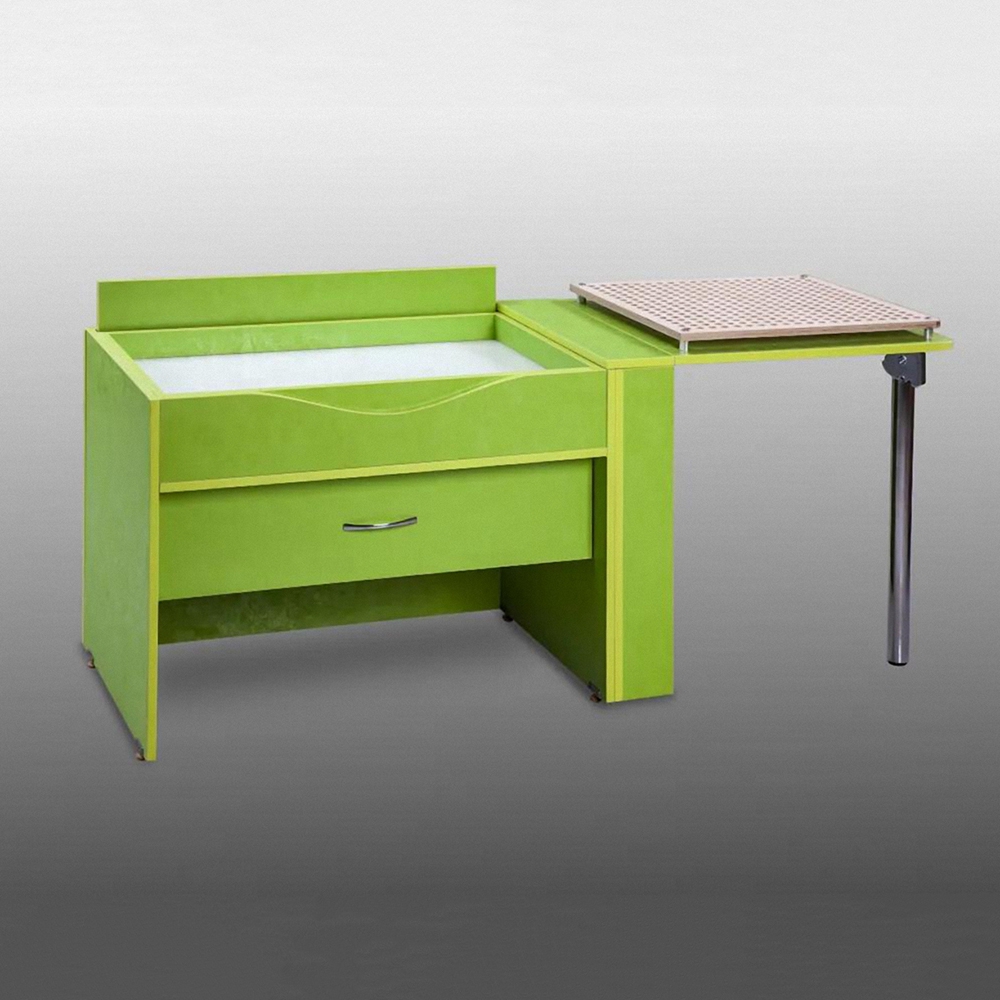 Если убрать все интерактивные составляющие комплекса, то получится полноценное и компактное рабочее место для занятий. Предметы, входящие в состав развлекательных комплексов, убираются в выдвижной ящик.
