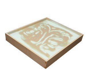 В короб насыпается песок и распределяется равномерным слоем по прозрачному безопасному стеклу. Если на песке что-нибудь нарисовать – рисунок снизу будет подсвечен.