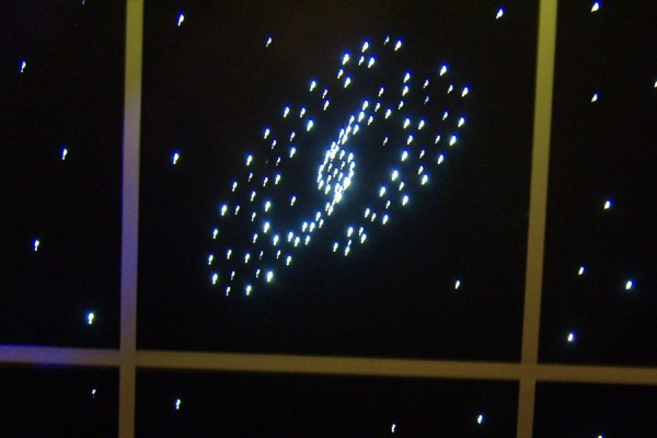 На плитке выложена Спиралевидная Галактика, «лопасти» которые вращаются вокруг центра на фоне мерцающих звезд. В эффекте задействовано не менее светящихся 1000 оптических волокон. Синхронизирующий светогенератор мощностью 50 Вт установлен на плитке.