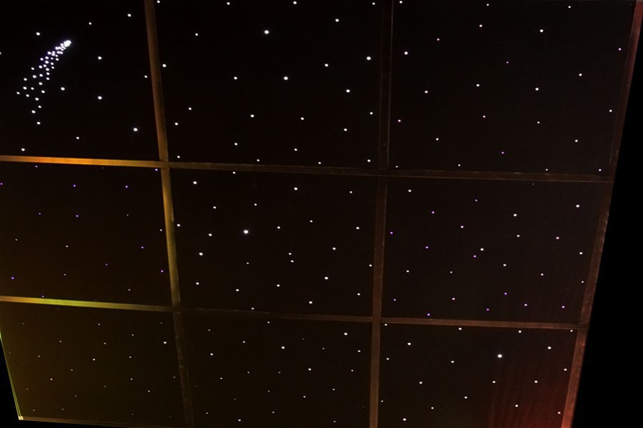 Комплект* на основе подвесной системы из 9-ти плиток размером 60х60 см с черной бархатной поверхностью, через ворс которой выведены оптические волокна, имитирующие звезды: не менее 29 шт. на плитку.