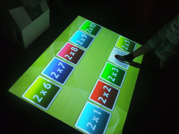Проекция может отображаться на любой горизонтальной поверхности, будь то пол, столы, батуты или любые другие поверхности.