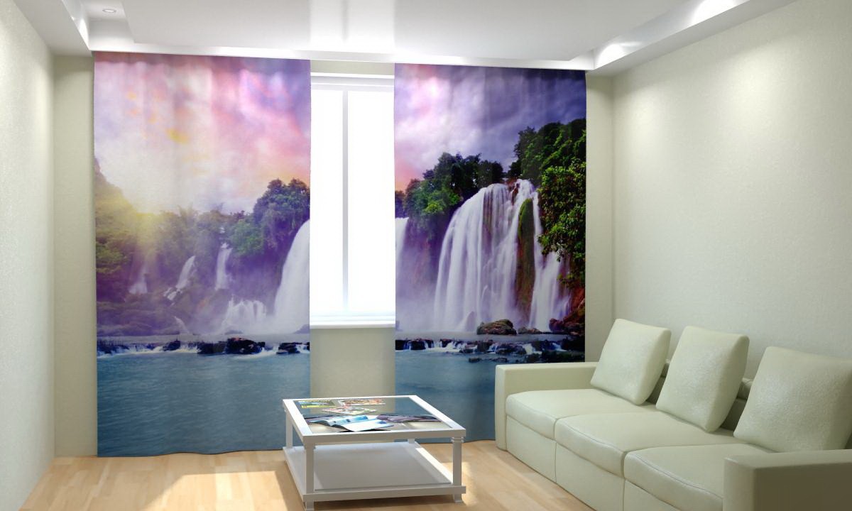 Комплект светонепроницаемых штор "Закат у водопада" - fgospostavki.ru - Белово