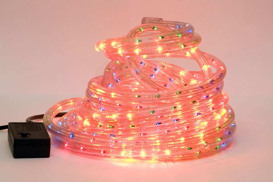 Гибкая нить с цветными лампочками внутри. Регулировка скорости. Длина 10 метров.