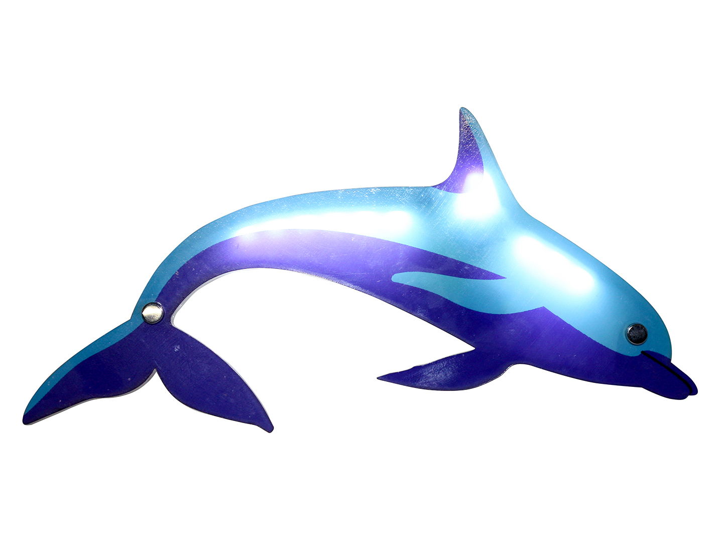 Дельфин, реагирующая на прикосновение пальца: загорается спинка, плавник. 25х10х5см.