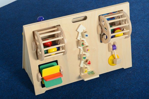 Двухсторонняя тактильная панель «Елочка» отлично разрабатывает у детей осязательные навыки, помогает развить интерактивную деятельность, а также предназначена для звуковой стимуляции.  Панель удобна в использовании - ее можно разместить как на полу, так и на столе. Корпус выполнен из дерева, в верхней части находится ручка для переноски.