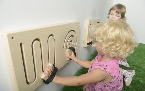 Ребенок надевает крепления либо на руки, либо на ноги, и проводит рукой или ногой от начала до конца лабиринта.