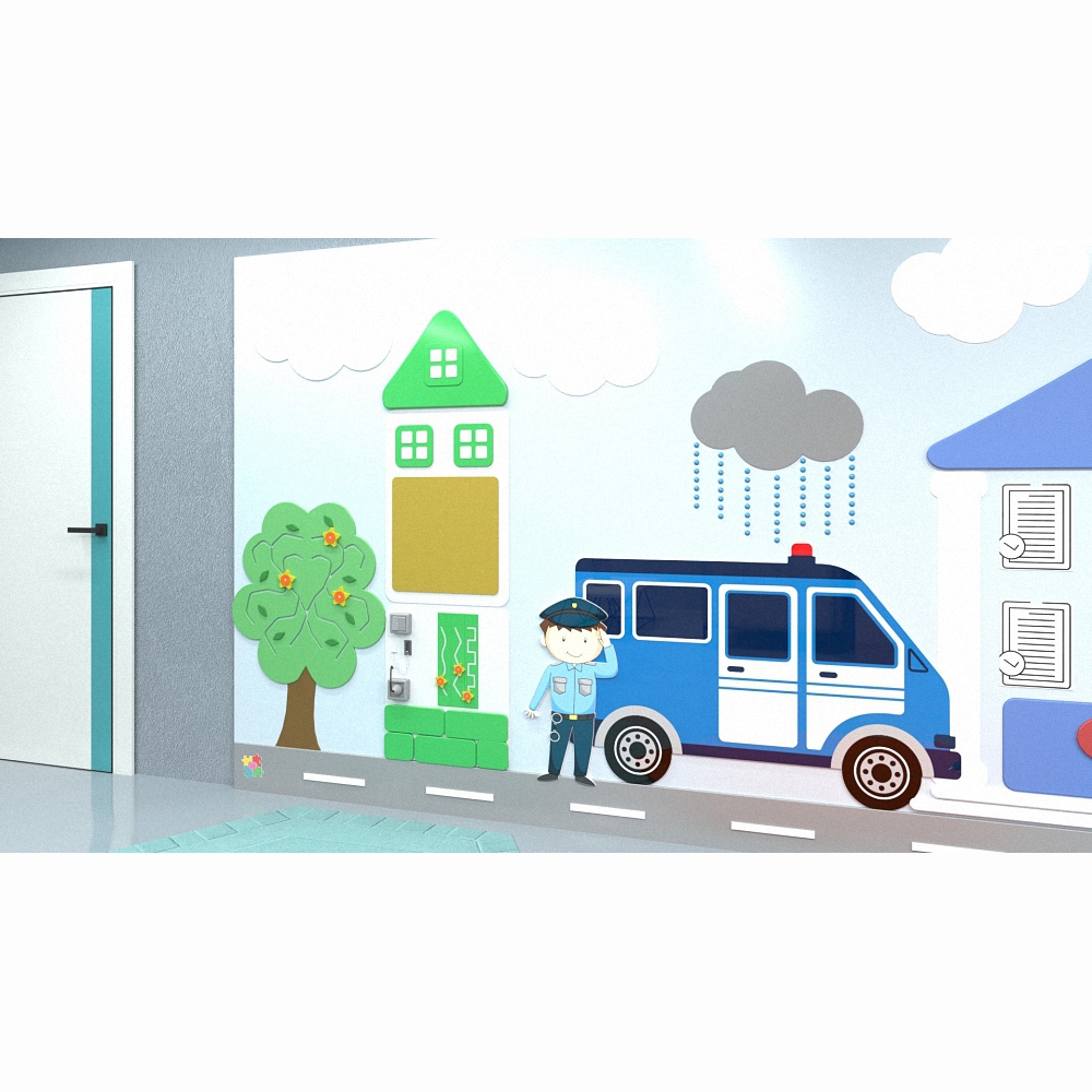 Передвигая одновременно обеими руками разнообразные элементы в тактильных лабиринтах, ребёнок в доступной игровой форме развивает работу обоих полушарий головного мозга, а игра с выключателем и сортером стимулирует мелкую моторику пальцев. Панель с цифрами познакомят ребёнка с понятием порядкового счёта, а циферблат – с понятием времени. Кармашки для дидактических бланков позволяют расширять функционал панели в любом направлении.